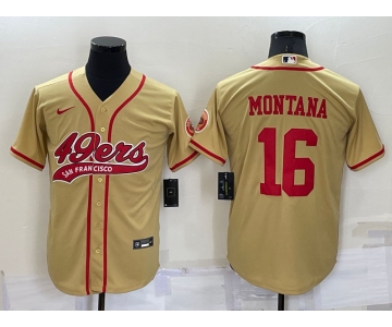 Men's San Francisco 49ers #16 Joe Montana Gold Stitched Cool Base Nike Baseball Jersey