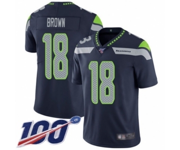 Men's Seattle Seahawks #18 Jaron Brown Navy Blue Team Color Vapor Untouchable Limited Player 100th Season Football Jersey