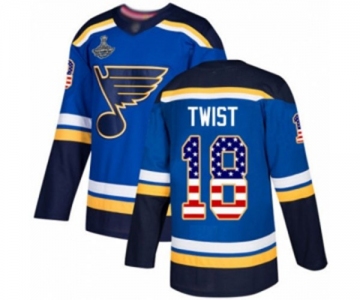 Men's St. Louis Blues #18 Tony Twist Authentic Blue USA Flag Fashion 2019 Stanley Cup Champions Hockey Jersey