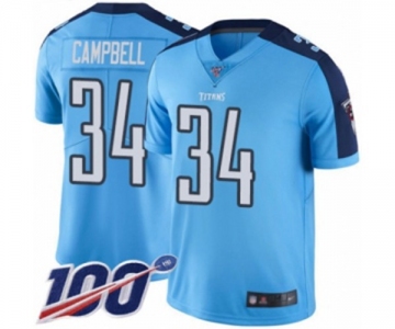 Men's Tennessee Titans #34 Earl Campbell Limited Light Blue Rush Vapor Untouchable 100th Season Football Jersey