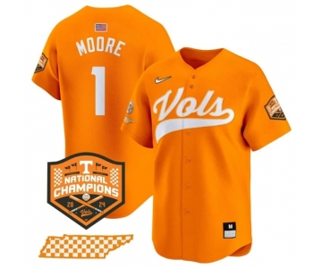 Men's Tennessee Volunteers #1 Christian Moore Orange 2024 Champions Vapor Limited Stitched Jersey