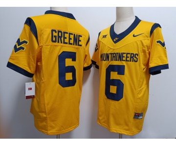 Men's West Virginia Mountaineers #6 Garrett Greene Yellow FUSE College Stitched Jersey