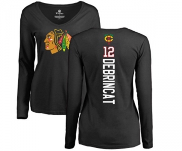 NHL Women Adidas Chicago Blackhawks #12 Alex DeBrincat Black Backer Long Sleeve T-Shirt