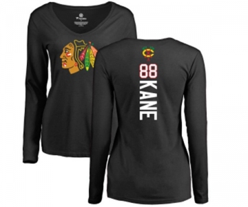 NHL Women Adidas Chicago Blackhawks #88 Patrick Kane Black Backer Long Sleeve T-Shirt