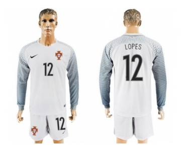 Portugal #12 Lopes White Goalkeeper Long Sleeves Soccer Country Jersey