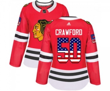 Women Adidas Chicago Blackhawks #50 Corey Crawford Authentic Red USA Flag Fashion NHL Jersey