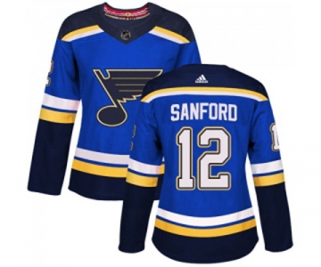 Women Adidas St. Louis Blues #12 Zach Sanford Authentic Royal Blue Home NHL Jersey