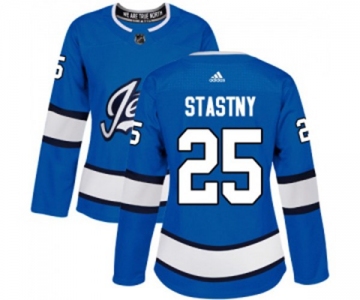 Women Adidas Winnipeg Jets #25 Paul Stastny Authentic Blue Alternate NHL Jersey