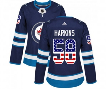 Women Adidas Winnipeg Jets #58 Jansen Harkins Authentic Navy Blue USA Flag Fashion NHL Jersey