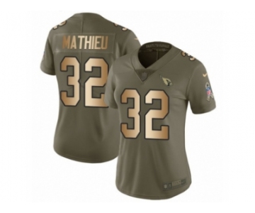 Women Nike Arizona Cardinals #32 Tyrann Mathieu Limited Olive Gold 2017 Salute to Service NFL Jersey