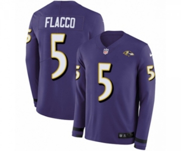 Women Nike Baltimore Ravens #5 Joe Flacco Limited Purple Therma Long Sleeve NFL Jersey