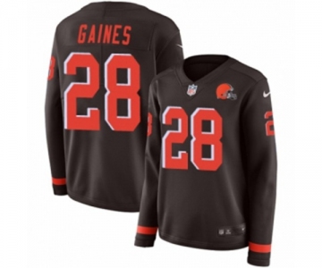Women Nike Cleveland Browns #28 E.J. Gaines Limited Brown Therma Long Sleeve NFL Jersey