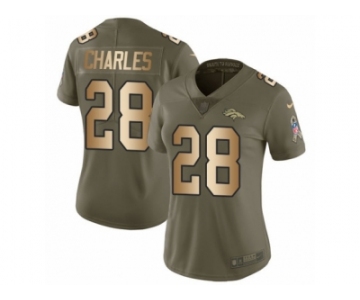 Women Nike Denver Broncos #28 Jamaal Charles Limited Olive Gold 2017 Salute to Service NFL Jersey