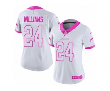 Women Nike Los Angeles Chargers #24 Trevor Williams Limited White Pink Rush Fashion NFL Jersey