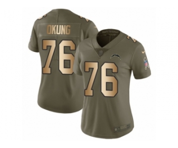 Women Nike Los Angeles Chargers #76 Russell Okung Limited Olive Gold 2017 Salute to Service NFL Jersey