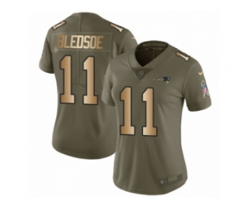 Women Nike New England Patriots #11 Drew Bledsoe Limited Olive Gold 2017 Salute to Service NFL Jersey
