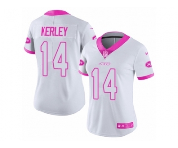 Women Nike New York Jets #14 Jeremy Kerley Limited White Pink Rush Fashion NFL Jersey