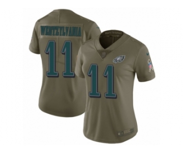 Women Nike Philadelphia Eagles #11 Carson Wentz Limited Olive 2017 Salute to Service Wentzylvania NFL Jersey