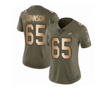 Women Nike Philadelphia Eagles #65 Lane Johnson Limited Olive Gold 2017 Salute to Service NFL Jersey