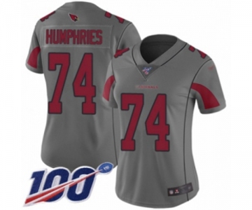 Women's Arizona Cardinals #74 D.J. Humphries Limited Silver Inverted Legend 100th Season Football Jersey