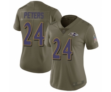 Women's Baltimore Ravens #24 Marcus Peters Limited Olive 2017 Salute to Service Football Jersey
