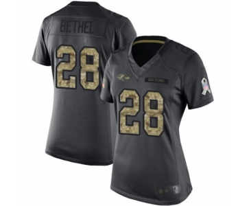 Women's Baltimore Ravens #28 Justin Bethel Limited Black 2016 Salute to Service Football Jersey