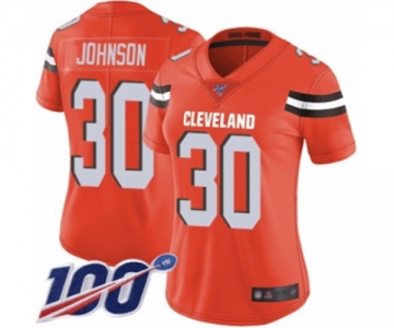 Women's Cleveland Browns #30 D'Ernest Johnson Orange Alternate Vapor Untouchable Limited Player 100th Season Football Jersey
