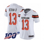 Women's Cleveland Browns #65 Larry Ogunjobi White Vapor Untouchable Limited Player 100th Season Football Jersey