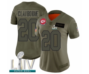 Women's Kansas City Chiefs #20 Morris Claiborne Limited Olive 2019 Salute to Service Super Bowl LIV Bound Football Jersey