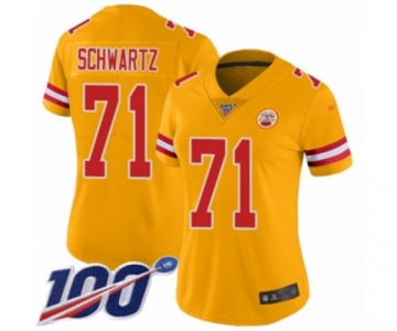 Women's Kansas City Chiefs #71 Mitchell Schwartz Limited Gold Inverted Legend 100th Season Football Jersey