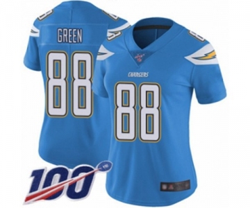 Women's Los Angeles Chargers #88 Virgil Green Electric Blue Alternate Vapor Untouchable Limited Player 100th Season Football Jersey