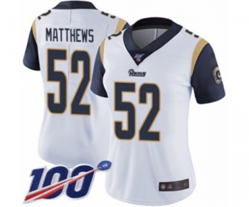 Women's Los Angeles Rams #52 Clay Matthews White Vapor Untouchable Limited Player 100th Season Football Jersey