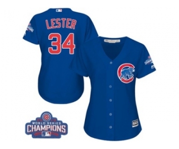 Women's Majestic Chicago Cubs #34 Jon Lester Authentic Royal Blue Alternate 2016 World Series Champions Cool Base MLB Jersey