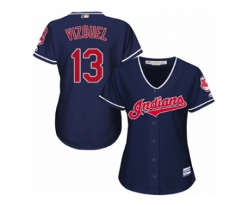 Women's Majestic Cleveland Indians #13 Omar Vizquel Authentic Navy Blue Alternate 1 Cool Base MLB Jersey