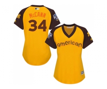 Women's Majestic New York Yankees #34 Brian McCann Authentic Yellow 2016 All-Star American League BP Cool BaseMLB Jersey