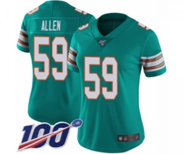 Women's Miami Dolphins #59 Chase Allen Aqua Green Alternate Vapor Untouchable Limited Player 100th Season Football Jersey