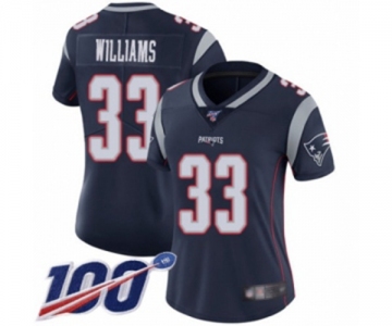 Women's New England Patriots #33 Joejuan Williams Navy Blue Team Color Vapor Untouchable Limited Player 100th Season Football Jersey
