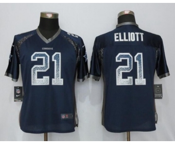 Women's Nike Dallas Cowboys #21 Ezekiel Elliott Drift Fashion Blue Jerseys