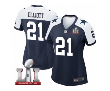 Women's Nike Dallas Cowboys #21 Ezekiel Elliott Elite Navy Blue Throwback Alternate Super Bowl LI NFL Jersey