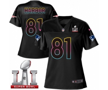 Women's Nike New England Patriots #81 Clay Harbor Game Black Fashion Super Bowl LI 51 NFL Jersey