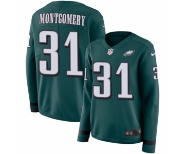Women's Nike Philadelphia Eagles #31 Wilbert Montgomery Limited Green Therma Long Sleeve NFL Jersey