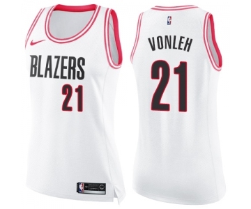 Women's Nike Portland Trail Blazers #21 Noah Vonleh Swingman White Pink Fashion NBA Jersey