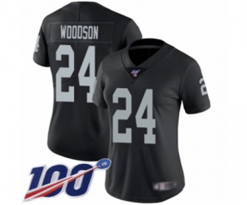 Women's Oakland Raiders #24 Charles Woodson Black Team Color Vapor Untouchable Limited Player 100th Season Football Jersey