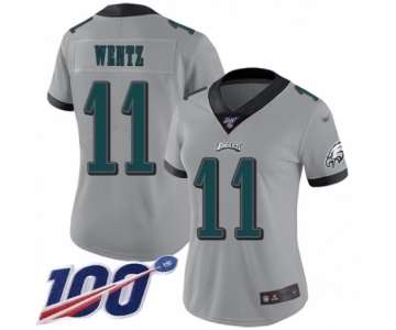 Women's Philadelphia Eagles #11 Carson Wentz Limited Silver Inverted Legend 100th Season Football Jersey