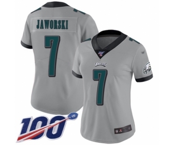 Women's Philadelphia Eagles #7 Ron Jaworski Limited Silver Inverted Legend 100th Season Football Jersey