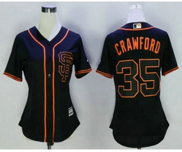 Women's San Francisco Giants #35 Brandon Crawford Black SF Cool Base Baseball Jersey