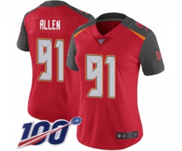 Women's Tampa Bay Buccaneers #91 Beau Allen Red Team Color Vapor Untouchable Limited Player 100th Season Football Jersey