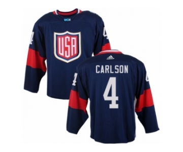 Youth Adidas Team USA #4 John Carlson Authentic Navy Blue Away 2016 World Cup Ice Hockey Jersey