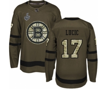 Youth Boston Bruins #17 Milan Lucic Premier Green Salute to Service 2019 Stanley Cup Final Bound Hockey Jersey