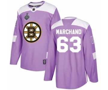 Youth Boston Bruins #63 Brad Marchand Authentic Purple Fights Cancer Practice 2019 Stanley Cup Final Bound Hockey Jersey